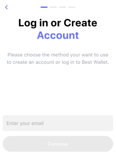 To get started, you’ll need either a crypto wallet like Best Wallet or an account at a crypto exchange like Binance or Coinbase. We recommend using Best Wallet because it gives you full control over your crypto tokens and offers access to a wider range of coins than many exchanges. You can also sign up for Best Wallet with just an email address, whereas exchanges require you to go through Know Your Customer checks.