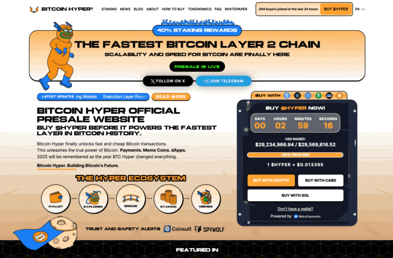 فقد جمع مشروع Bitcoin Hyper (HYPER) أكثر من 29.22 مليون دولار في مرحلته المسبقة، مع تصاعد الاهتمام بحلّه من الطبقة الثانية المبني على سرعة سولانا.