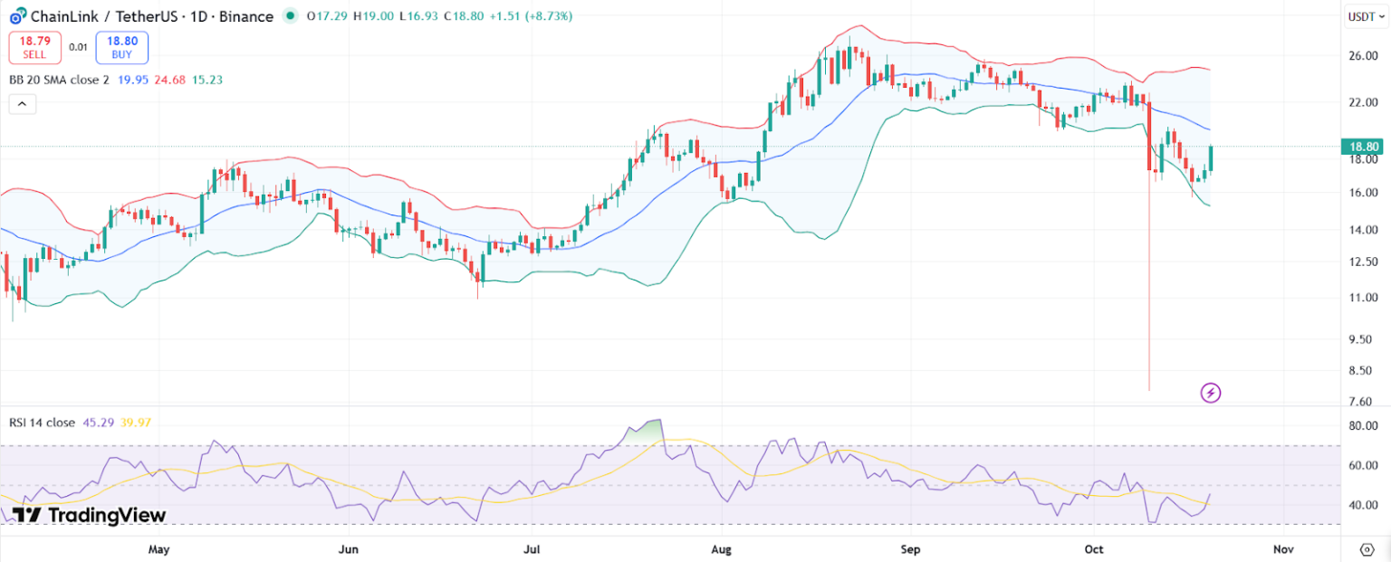 يتداول سعر عملة LINK حاليًا عند حوالي 18.84 دولارًا بقيمة سوقية تبلغ 12.75 مليار دولار.