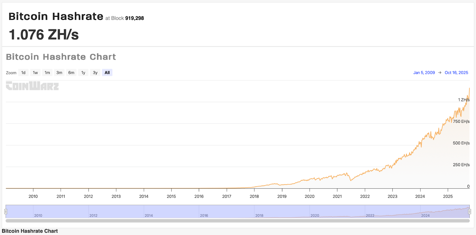 يبلغ معدل التجزئة (الهاش) لبلوكتشين بيتكوين (Bitcoin Blockchain) قيمة 1.0 سيكستليون هاش في الثانية (ZH/s) تقريباً، أي أكثر من تريليون تيرا هاش تتنافس على تعدين 144 كتلةٍ في اليوم، ويُشبه هذا شراء بطاقة يانصيب من أصل 10-11 مليون بطاقةٍ كلَّ 10 دقائق.