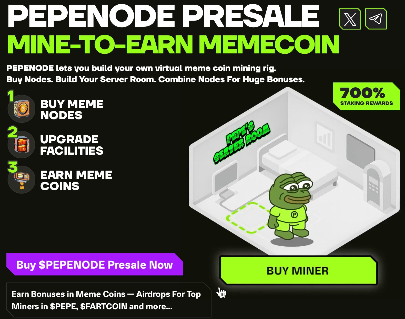 فبدلاً من منافسة منشآت التعدين التي تبلغ قيمتها مليارات الدولارات مع فرصةٍ ضئيلةٍ لتعدين كتلةٍ واحدة، يُمكنكم الاستعانة بعملة بيبي نود (PepeNode) التي تضع إمكانية الكسب في أيدي اللاعبين الصغار، حيث يُمكن للمستخدمين تحقيق الأرباح عبر التجميع الإستراتيجي لعُقَد التعدين الافتراضية التي تُنتج مكافآتٍ متنوعة تبعاً لطريقة إطلاقها في النظام التقني.