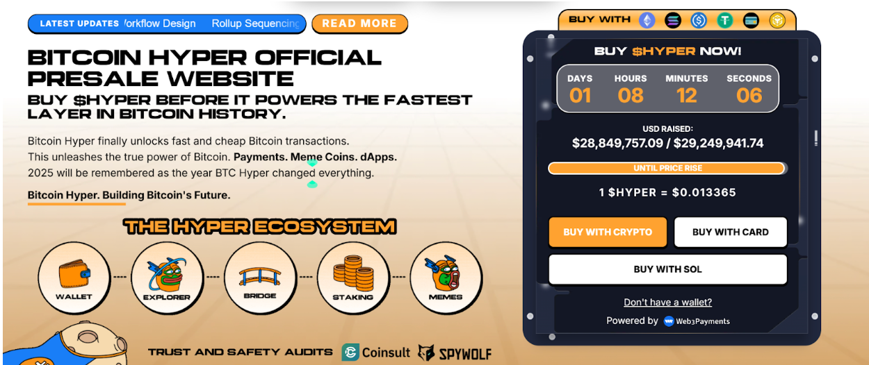 يقدم Bitcoin Hyper سرعات تنفيذ فائقة، ويعتمد على تقنيات مستوحاة من سولانا لحل مشكلات مزمنة مثل الازدحام وطول أوقات التسوية.