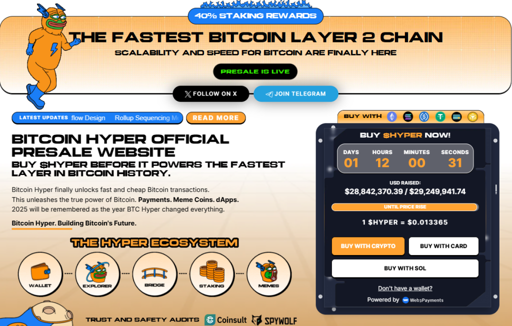 إلا أنه رغم الفوضى في السوق، ما زالت بعض مشاريع العملات الرقمية الوليدة تُظهر قوة لافتة. أبرزها مشروع Bitcoin Hyper (HYPER)، الذي جذب اهتمامًا كبيرًا بعدما جمع 28.9 مليون دولار في الطرح المسبق. لكونه يقدّم المشروع رؤية تهدف إلى إكساء رأسمال بيتكوين الخامل -البالغ 2 تريليون دولار – ميزة استخدام فعلية وحقيقة من الممكن الاستفادة منها في عالم الكريبتو، ما وضعه ضمن أفضل الطروحات المسبقة في السوق حاليًا.