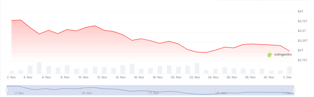 افتتح ديسمبر على تراجع حاد في سوق العملات الرقمية، ودفع الهبوط القيمة السوقية الإجمالية إلى ما دون 3 تريليونات دولار. وجاء الانهيار بعد إشارة بنك اليابان إلى احتمال رفع الفائدة هذا الشهر، وهو ما لم يتوقعه المتداولون. هذه الإشارة دفعت عائد السندات اليابانية لأجل عامين إلى 1.84%، وهو مستوى لم يُسجّل منذ عام 2008، ما هزّ معنويات الأسواق حول العالم.