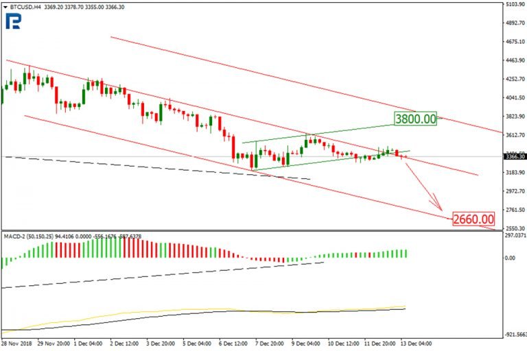 Bitcoin is again under pressure on Thursday, Dec 13, trading at $3,463, reports Dmitriy Gurkovskiy, Chief Analyst at RoboForex.
