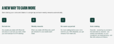 The platform enables anyone to earn up to 30% APY staking passive income from crypto assets with minimal effort and high transparency. You can start earning these rewards on a wide range of coins with weekly compounding payouts and zero lock-in commitments.