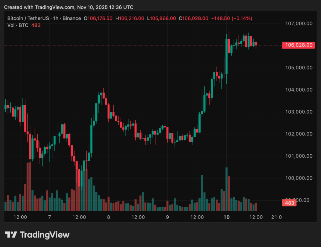 Am heutigen 10. November notiert Bitcoin laut CoinGecko bei rund 106.000 US-Dollar; die kurzfristigen positiven Ausschläg gen Norden spiegeln Headlines aus Washington und die Erwartung an den Fed-Pfad wider. Im Wochenschluss konnte Bitcoin bullischerweise über dem 50er-EMA schließen, so dass ein weiterer Abwärtstrend zumindest technisch unwahrscheinlich erscheint. Kann BTC das Jahr 2025 mit einem explosiven Q4 abschließen?