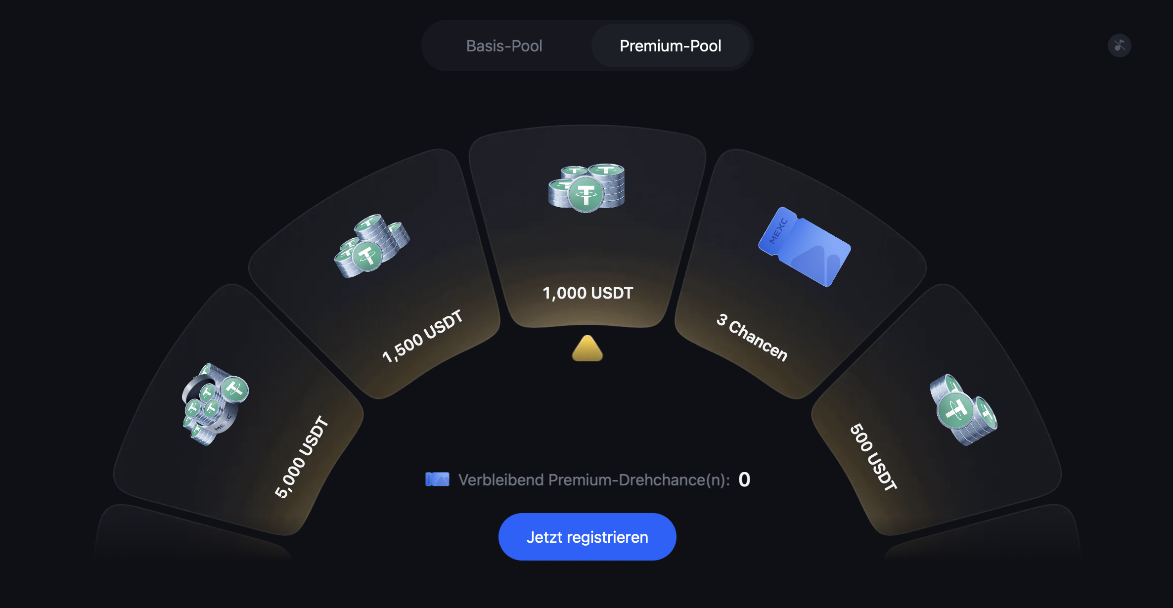 Über tägliche Aufgaben können nicht nur weitere Drehversuche mit Belohnungen aus dem “Basis-Pool” freigeschalten werden, sondern später auch der sogenannte “Premium-Pool”. Hier wartet die Chance auf vierstellige Gewinne mit bis zu 5000 USDT pro Drehung. Unverbrauchte Drehversuche verfallen am Ende der Aktion. Wichtig: Eine abgeschlossene KYC-Verifizierung ist Pflicht. Ausnahme: Für europäische Neukunden gilt beim ersten Kauf via Kredit- oder Debitkarte ein erleichtertes Onboarding – Einzahlungen bis zu 150 Euro sind ohne KYC möglich, um den Einstieg zu erleichtern. Die Gewinne werden innerhalb von sieben Werktagen auf die Wallet gesendet.
