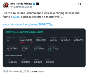 Parallel sorgt ein viraler Trend für Aufmerksamkeit: Immer wieder kursieren Erfolgsgeschichten von Solo-Minern im Netz, die mit kleinen Setups „Lotto-Gewinne“ erzielen – oft mit leisen, effizienten Geräten direkt aus dem Wohnzimmer!