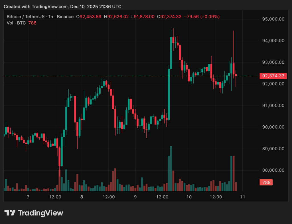 Bitcoin pendelt nach der Entscheidung um rund 92.000 US-Dollar, Ethereum um etwa 3.350 US-Dollar – von einem explosiven „Risk-on“-Move ist zunächst nichts zu sehen.