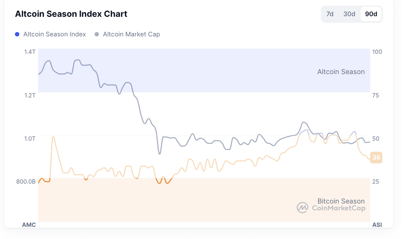 Viele Altcoins sind aktuell weit von ihren Allzeithochs entfernt – ein klarer Hinweis auf den anhaltenden Bärenmarkt. Eine klassische Altcoin-Saison blieb zuletzt aus, was auch der Altcoin Season Index bestätigt. Stattdessen dominierte Bitcoin die Kapitalströme, während Altcoins strukturell unter Druck standen.