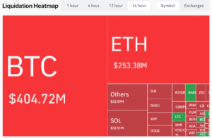 Liquidations- und Derivatedaten zeigen nämlich, dass es im Rahmen des gestreiften Impulses gestern zu Short-Liquidierungen im Wert von 718 Millionen US-Dollar kam, wobei rund 404 Millionen USD auf Bitcoin und 253 Millionen USD auf Ethereum entfielen.