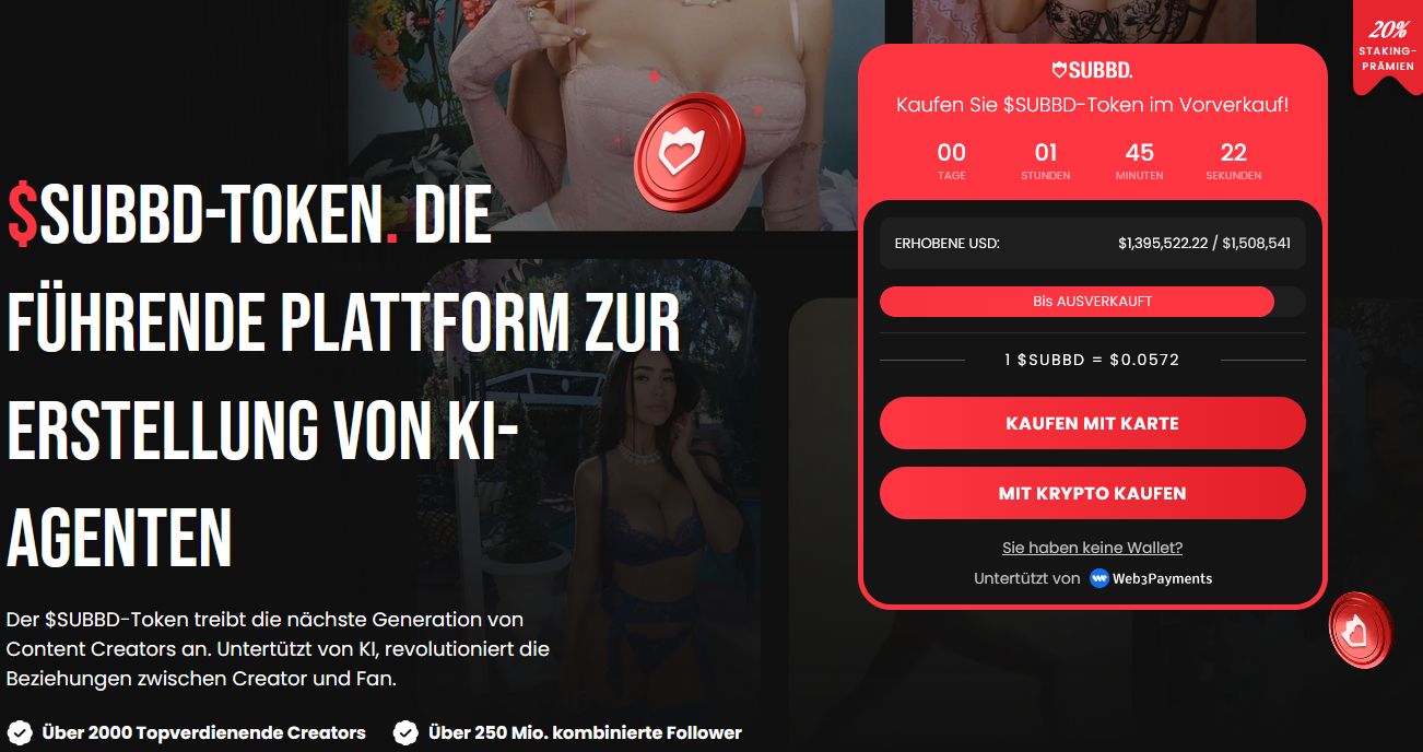 22-fache Rendite bis 2025: Einige Analysten haben erklärt, dass SUBBD eine potenzielle Rendite von 22x bis Ende 2025. Es wird jedoch empfohlen, eigene Nachforschungen anzustellen.