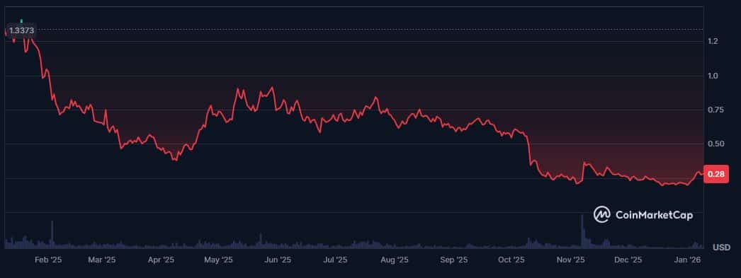 Anfang 2026: Die ersten Januar-Tage sorgten für einen merklichen Anstieg. Innerhalb weniger Tage sprang der Kurs von 0,20 auf 0,30 USD, bevor im Februar ein Bruch der 0,20-USD-Marke erfolgte.