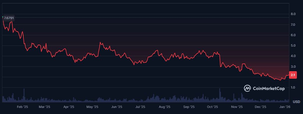 DOT kämpft sich vom Jahrestief ($1,41) zurück und notiert derzeit bei 1,99 USD. Während der Markt auf das JAM-Upgrade und neue Entscheidungen der US-Börsenaufsicht SEC (ETF-News) wartet, akkumulieren Anleger. 📉 Support: Die psychologische Marke von 2,00 USD dient als starker Boden.