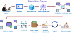 Proof of Work ist ein dezentrales Konsensverfahren, bei dem sogenannte Miner kryptografische Rätsel lösen, um neue Blöcke zu validieren und die Integrität einer Blockchain zu gewährleisten. Die Miner stehen dabei in unmittelbarem Wettbewerb: