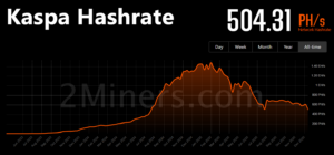 Die Hashrate des jungen Projekts übertrifft die der anderen PetaHash-Chains um ein Vielfaches und signalisiert eine außergewöhnliche Dynamik. Allerdings ist die Hashrate (im Einklang mit dem KAS-Preis) seit Jahresbeginn um über 65 Prozent eingebrochen.