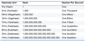 Doch welches Projekt ist nun das sicherste bzw. dezentralste? Dafür vergleichen wir die Hashrate der verschiedenen Netzwerke, wobei uns die folgende Tabelle bei der Einordnung hilft: