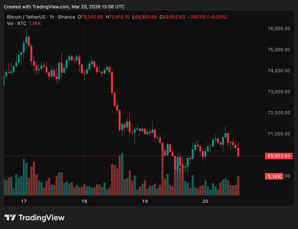- Der Bitcoin-Kurs notiert am heutigen 20 März laut CoinGecko bei rund 70.000 US-Dollar.