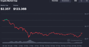 Zum Zeitpunkt der Betrachtung notierte die Leitwährung mit einem Plus von knapp drei Prozent, was eine grüne Welle über den gesamten Sektor auslöste. Die Marktkapitalisierung aller Kryptowährungen kletterte infolgedessen kurz auf 2,4 Billionen USD.