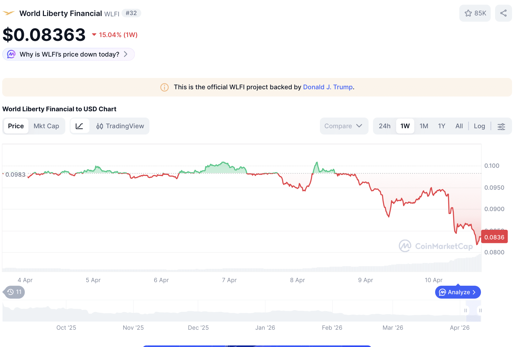 Zuletzt zeigte World Liberty Financial noch relative Stärke im schwachen Marktumfeld. Doch dieses Bild hat sich schlagartig gedreht: Innerhalb eines Tages verliert der Token rund 10 Prozent und gehört damit zu den schwächsten Kryptowährungen. Auf Wochensicht summieren sich die Verluste weiter. Auslöser sind neue On-Chain-Daten und Berichte, die erhebliche Zweifel an der Struktur und Liquidität des Projekts aufwerfen. Besonders kritisch: komplexe Kreditgeschäfte mit dem eigenen Token als Sicherheit. Genau diese Entwicklung sorgt nun für wachsende Nervosität – und könnte tiefere strukturelle Probleme im WLFI-Ökosystem offenlegen.