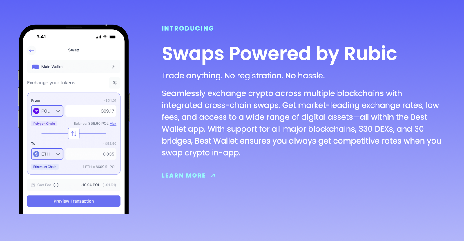Le portefeuille Web3 compte plus de 250 000 utilisateurs actifs mensuels et se distingue par ses frais compétitifs, son intégration de 330 DEX via Rubic, ainsi que son outil Upcoming Tokens.