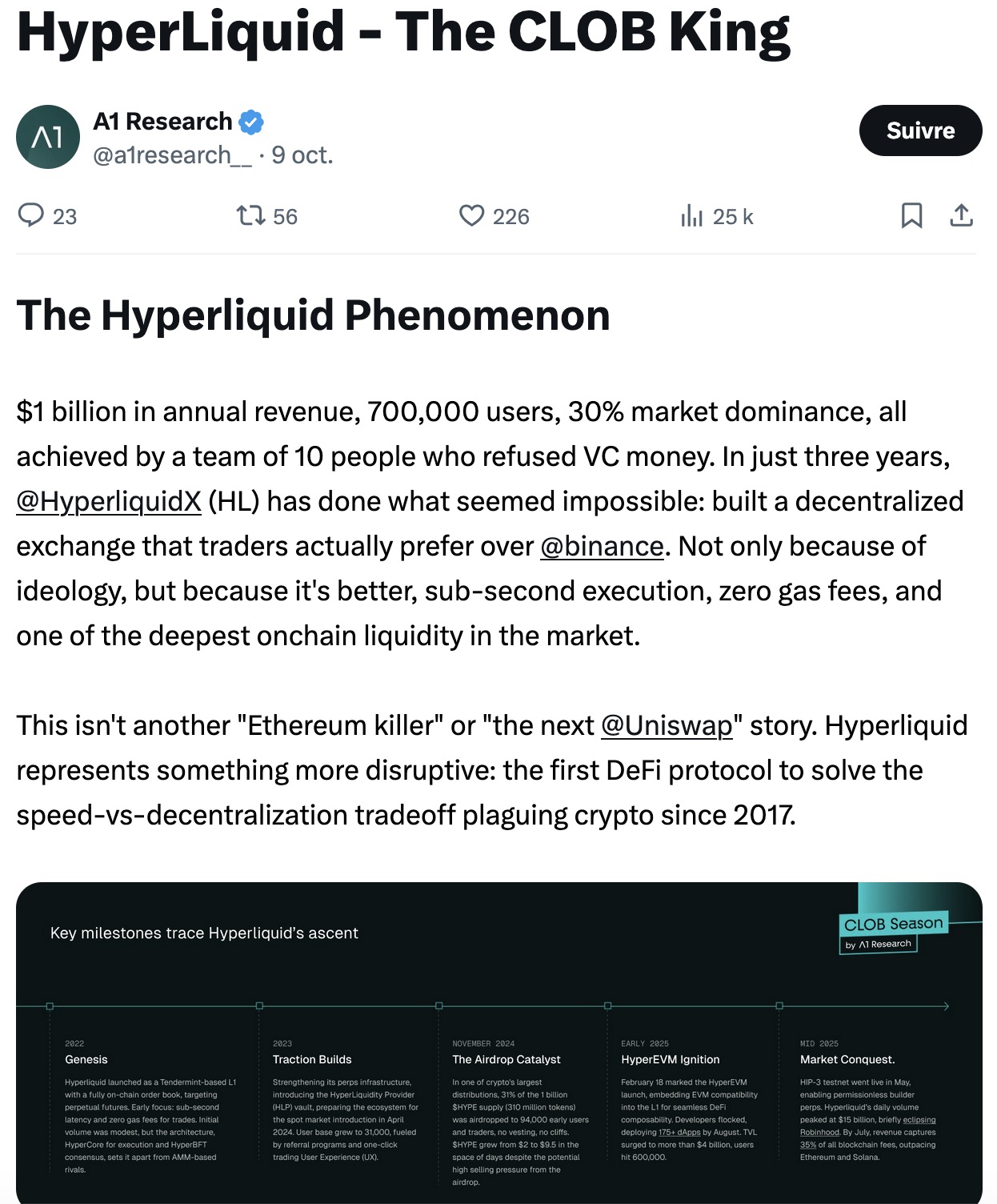 Le récit s’installe déjà sur X : HIP-3 serait l’exemple d’une permissionlessness utile, avec des incitations bien pensées pour élargir le champ des actifs traitables.