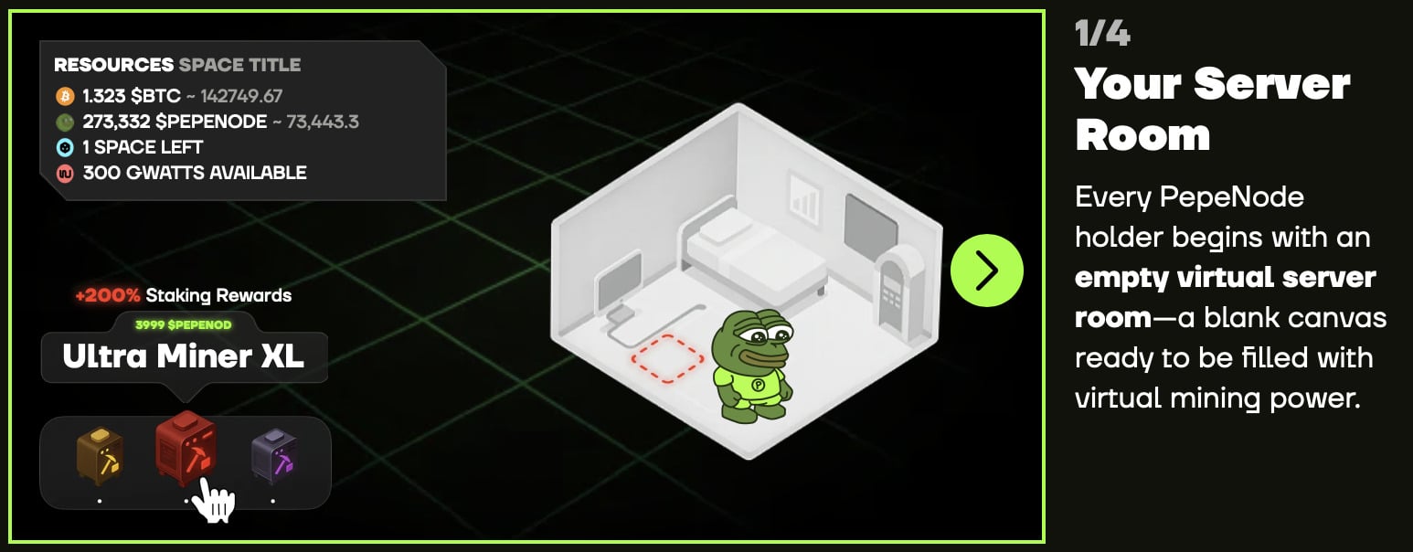 Au lancement, chaque joueur commence avec une salle de serveurs vide pour bâtir son empire de minage. Les participants à la prévente pourront immédiatement utiliser leurs jetons PEPENODE pour acheter des nœuds, agrandir leurs installations et installer des mises à jour vitales. Le gameplay reflète la logistique réelle du minage : équilibrer la consommation d’énergie, optimiser le refroidissement et faire des choix financiers judicieux.
