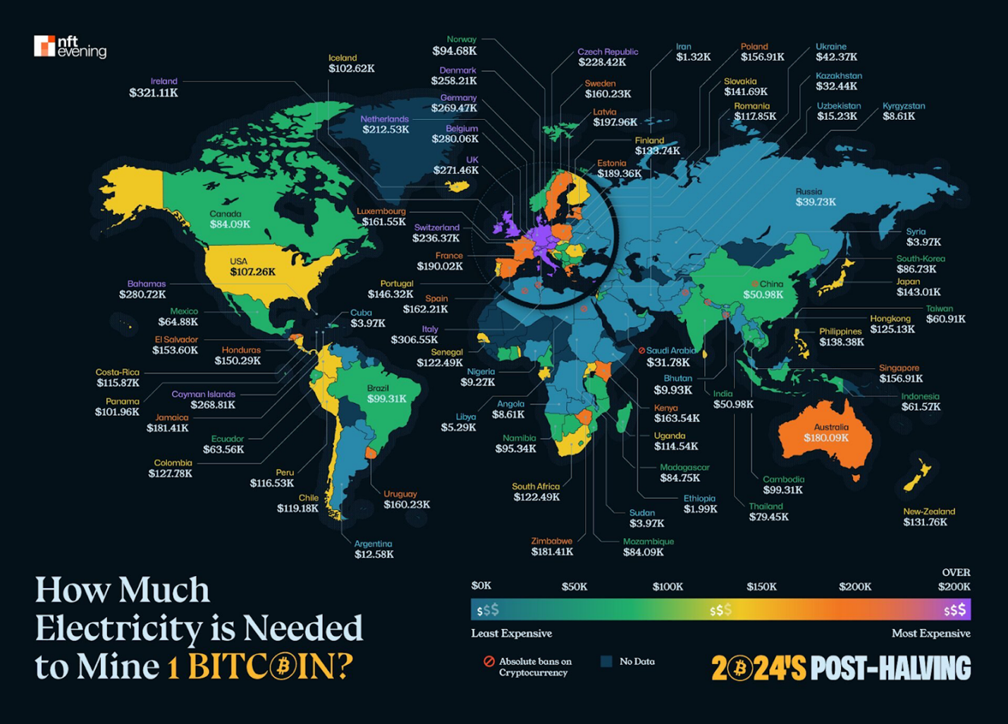 Selon NFTevening, miner un seul Bitcoin (BTC) consomme environ 6,4 millions de kilowattheures (kWh) d’électricité. Après le halving de 2024, cette consommation suffit à alimenter 61 foyers américains pendant un an ou à faire le tour du monde 86 fois en Tesla Model 3.