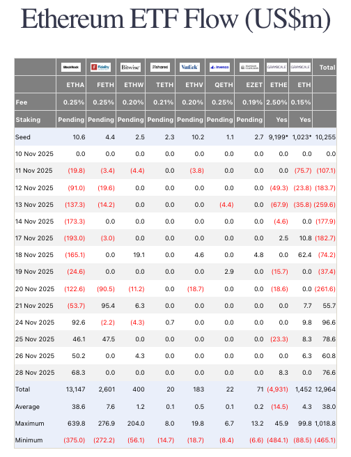 En parallèle, les flux ETF Ethereum sont clairement sortants.