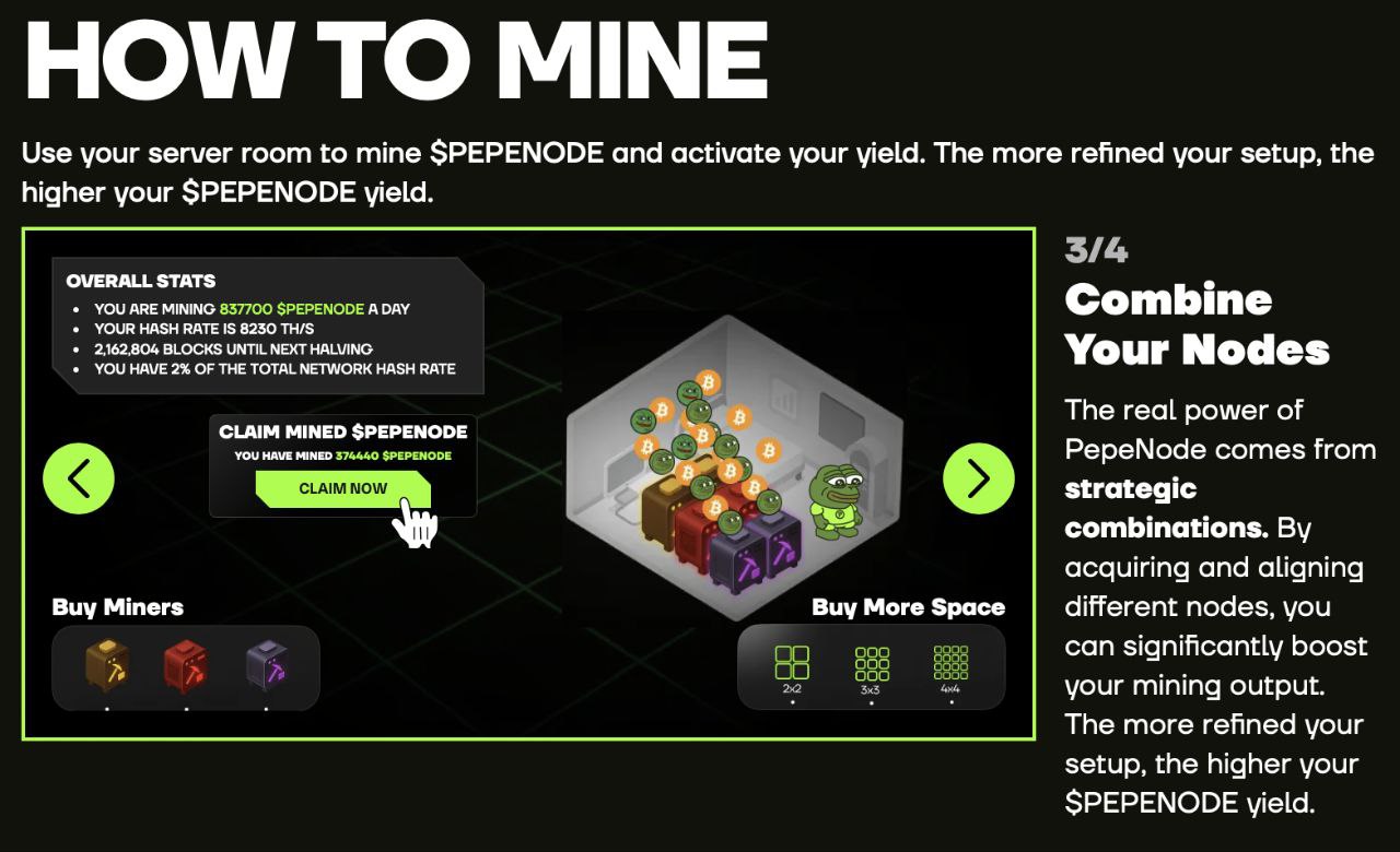 Pour comprendre son fonctionnement, il faut d’abord saisir ce que fait réellement PepeNode. Le projet développe un jeu de minage virtuel où les utilisateurs peuvent miner des tokens PEPENODE sans matériel coûteux ni configurations complexes.