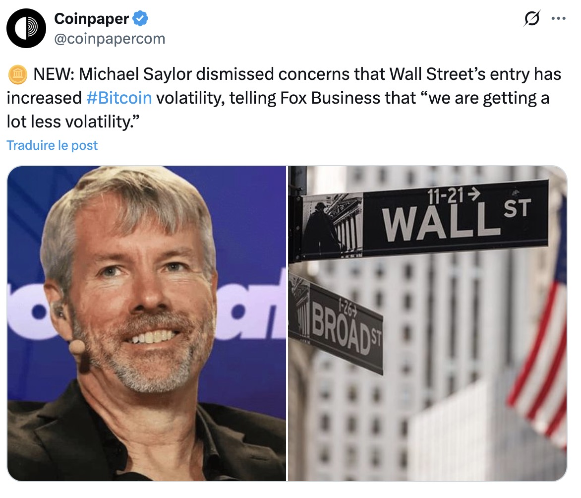 Pour l’instant, Saylor campe sur sa ligne. Il affirme ne pas redouter une nouvelle jambe de baisse profonde.