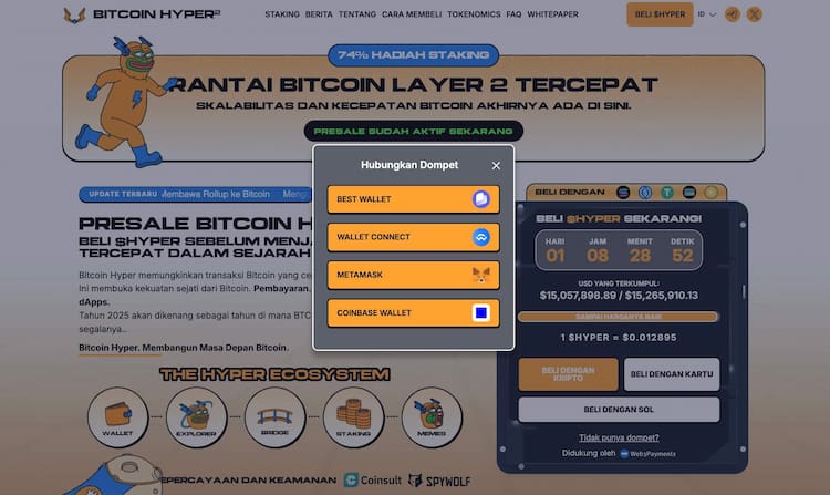 | $HYPER | 21 Miliar | 75% APY | Tidak Ada | Struktur presale berjenjang | Layer 2 Bitcoin pertama di Solana VM |