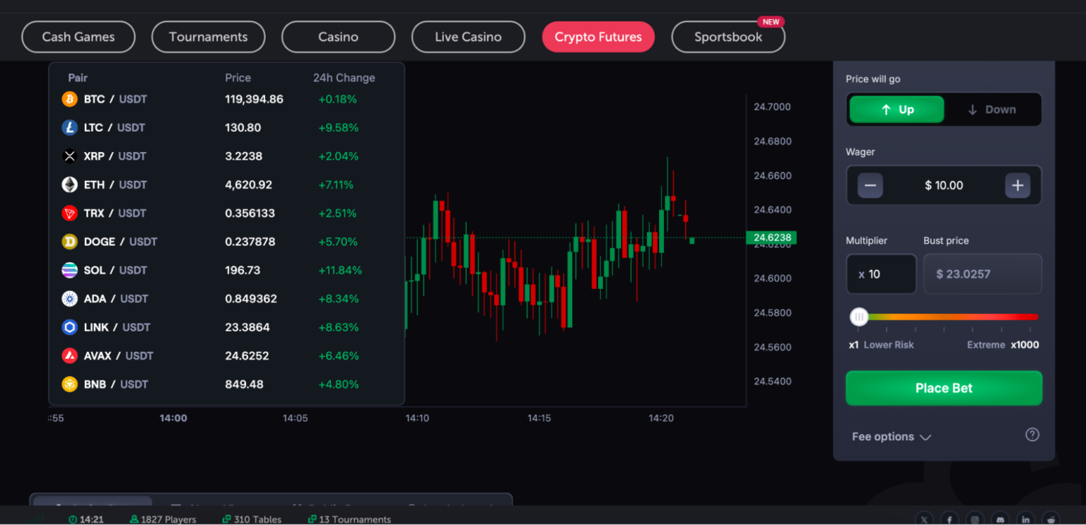 La piattaforma di trading CoinFutures funziona con il software CoinPoker, disponibile su desktop e dispositivi mobili. Fonte: CoinFutures