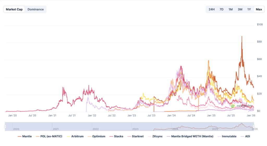 그러나 이 모델의 장기적인 성공은 애플리케이션 레이어의 성장에 달려 있다. 우리는 이미 이더리움 생태계에서 맨틀(MNT)과 폴리곤(POL) 같은 주요 레이어-2가 메인넷의 부담을 덜어주며 총 40억 달러의 TVL(총 예치 자산)을 확보하는 것을 목격했다.
