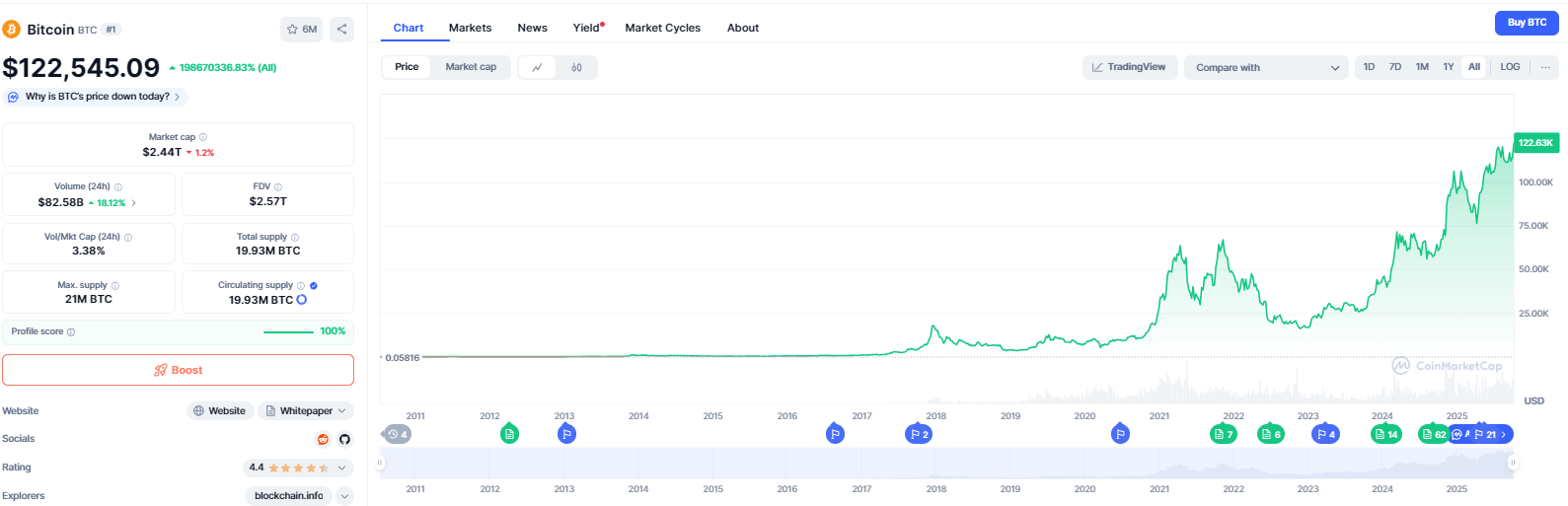 비트코인 가격은 약 12만 5,700달러의 사상 최고가를 기록한 뒤, 현재 약 12만 2,000달러 수준으로 조정을 받았다.
