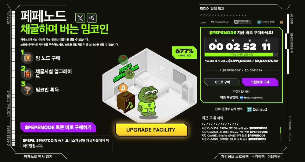페페노드는 암호화폐 채굴을 게임의 형태로 풀어낸 독특한 프로젝트다. 플레이어는 자신만의 디지털 서버룸을 만들고, 효율적인 운영을 위해 시스템을 직접 설계하고 최적화한다.
