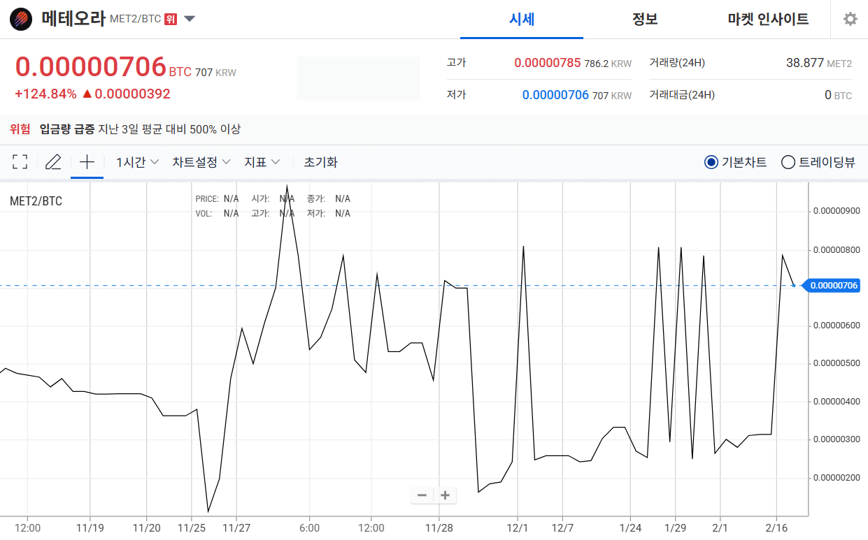 메테오라의 MET 코인은 업비트 거래소에서 주간 상승률 127.01%를 달성하여, 트렌딩 코인 제일 윗자리를 차지하고 있다. 코인마켓캡에 따르면, MET 코인의 현재 시가는 0.2129달러이며 시가총액은 1억 달러에 달한다. 코인은 작년 10월 23일 사상최고치 0.9달러를 달성했지만, 현재는 70% 가량 하락한 상태다. MET 코인은 바이비트, 빗썸, 업비트, 바이낸스 등 굵직한 거래소에 상장된 상태다.
