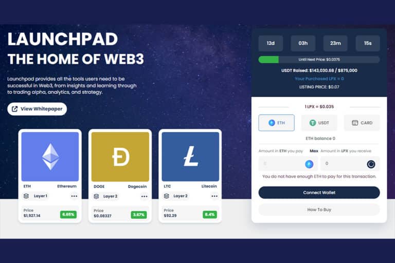 Launchpad is currently conducting the presale for its LPX token, which can be purchased using ETH, BNB, USDT, or cards. 250 million tokens have been set aside for the presale, and the total supply is 1.025 billion.