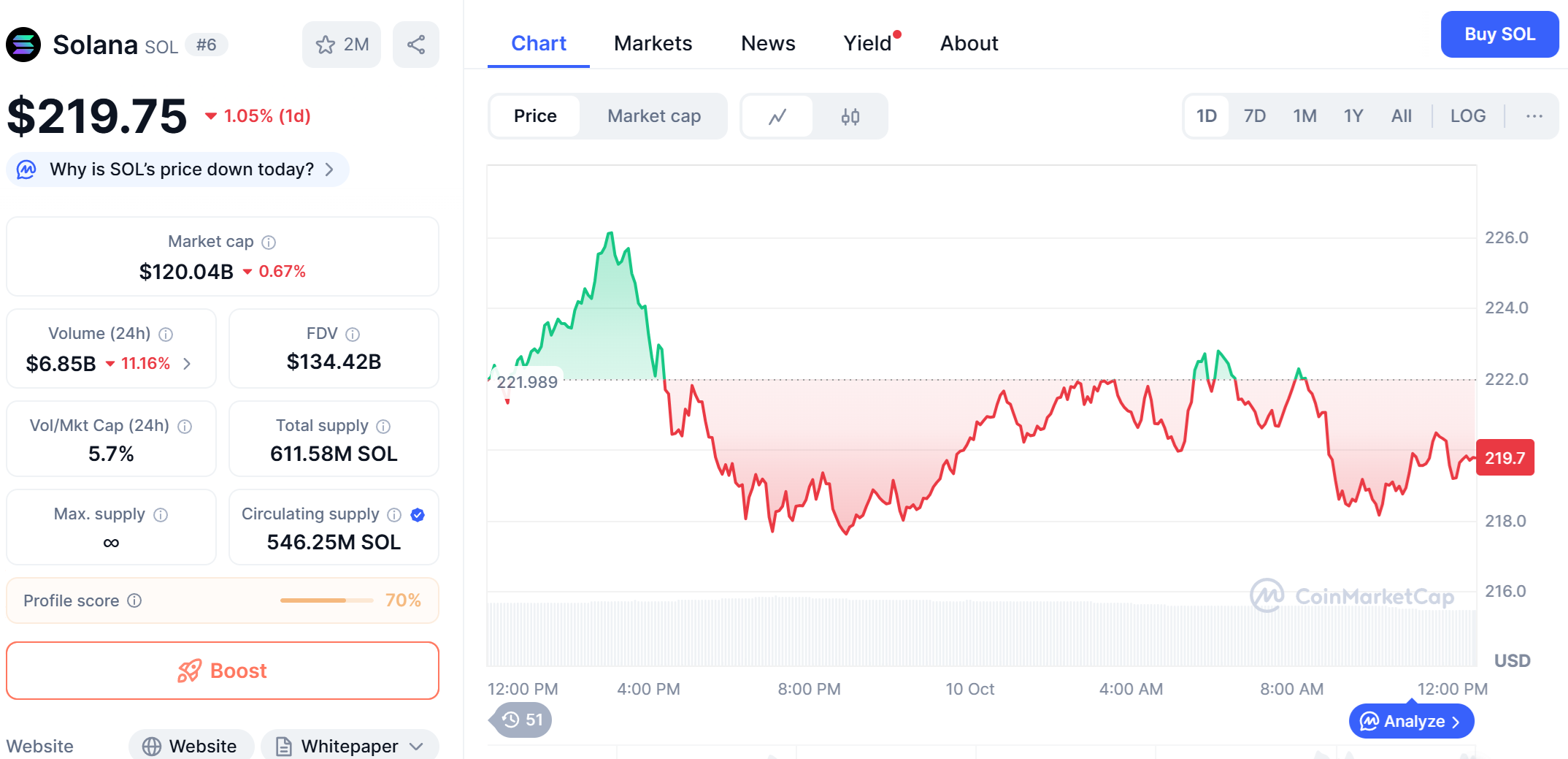 Solana (SOL) is currently trading around $219, showing signs of consolidation following a brief decline. The Relative Strength Index (RSI) at 51.66 indicates neutral market conditions, while the MACD suggests that bullish momentum may be weakening.