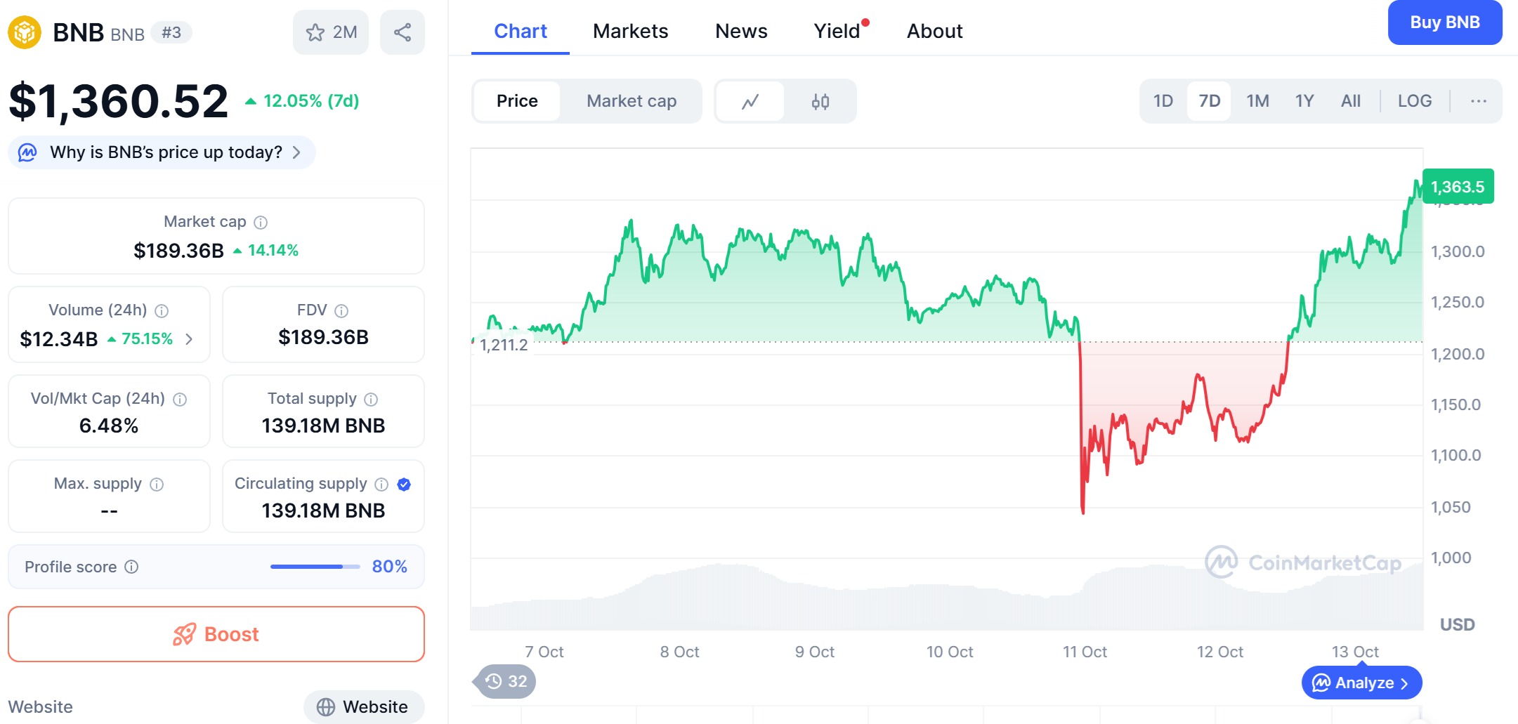 BNB has fully recovered from last week’s losses triggered by the US announcement of a 100% tariff on Chinese imports.
