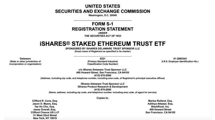 BlackRock heeft vrijdag een Ether ETF-aanvraag ingediend. Bron: SEC