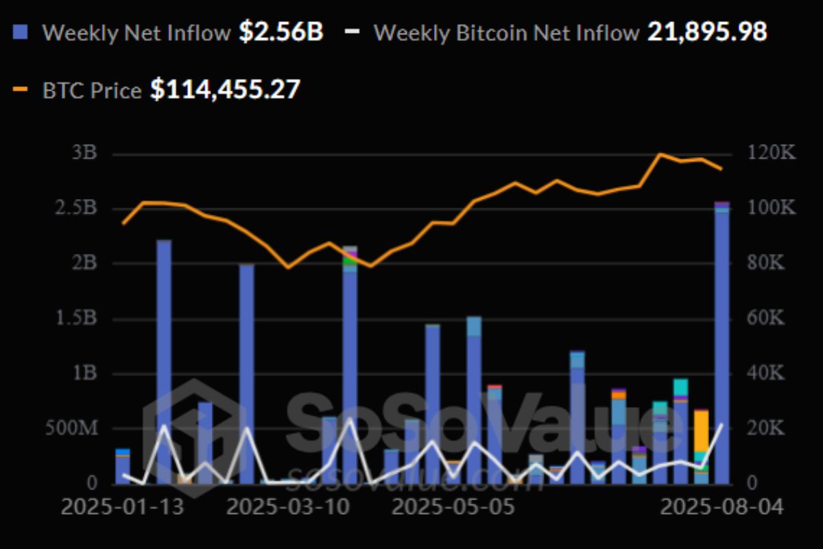 O mercado de Bitcoin (BTC) registrou um novo capítulo na sua evolução institucional. Empresas públicas compraram mais de US$ 2,5 bilhões da moeda em apenas uma semana, conforme dados da plataforma SoSoValue. O valor é referente ao período entre 28 de julho e 3 de agosto de 2025.