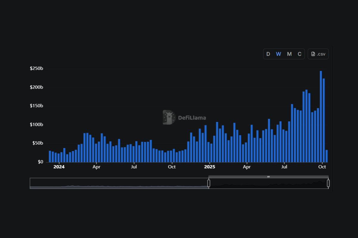 Apesar da competição intensa, o cenário para derivativos on-chain segue em franca expansão. O mercado, que movimentava alguns bilhões em 2023, já ultrapassa US$ 200 bilhões em volume semanal, segundo dados da DeFiLlama.