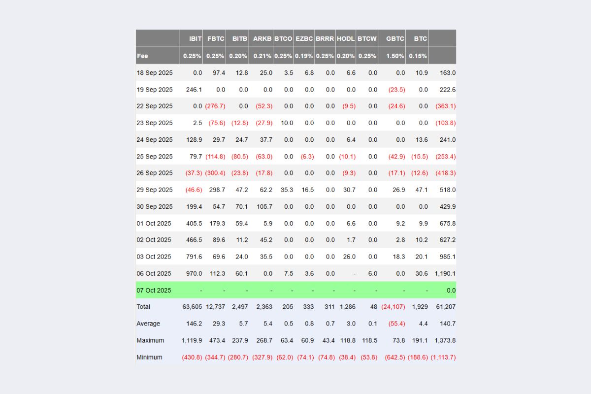 No acumulado de setembro e início de outubro, o volume total dos ETFs spot somou US$ 1,93 bilhão, segundo compilação do portal Farside Investors. A média diária ficou em torno de US$ 4,4 milhões por produto.
