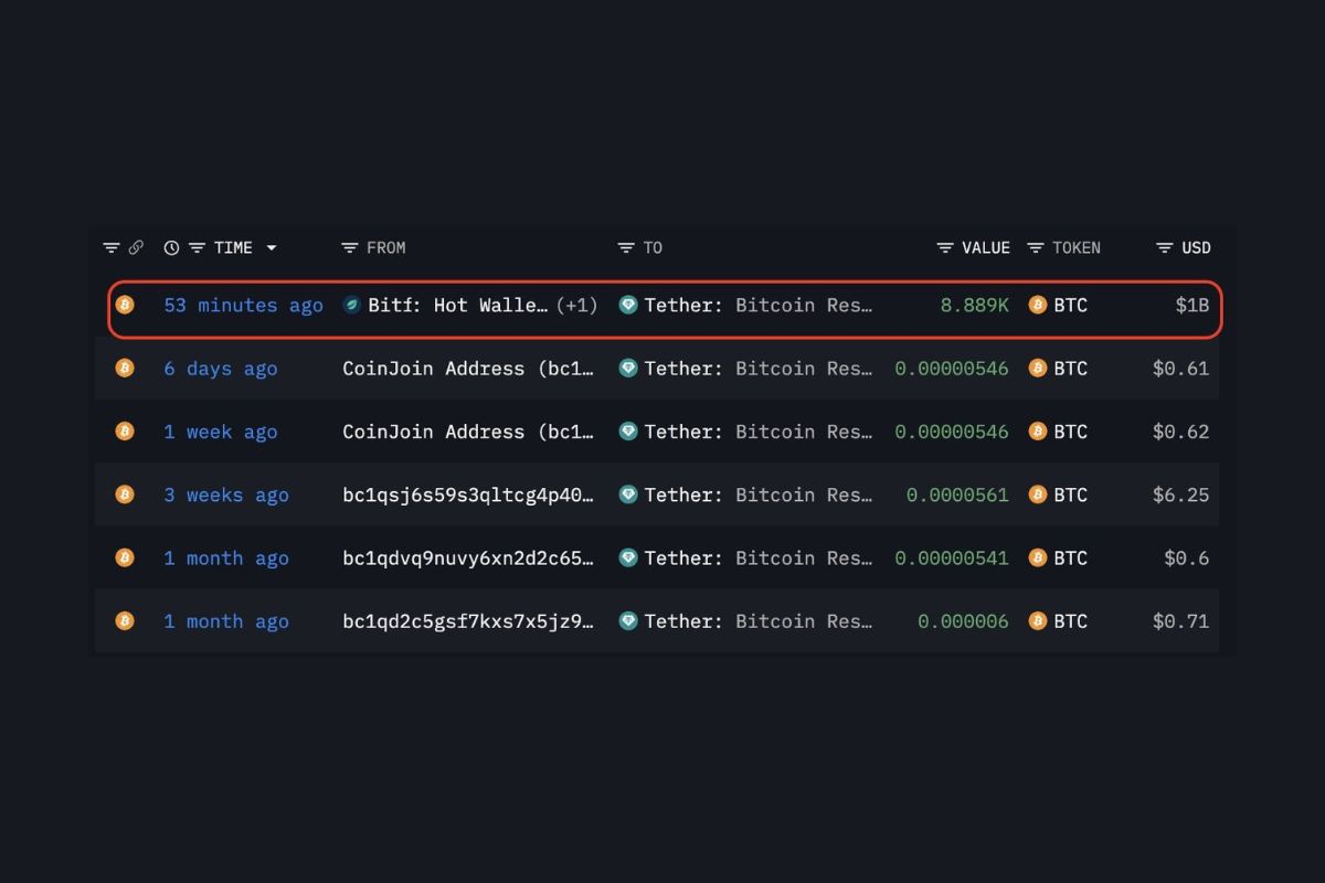 O mercado cripto foi sacudido com mais uma movimentação de peso. Segundo dados on-chain, a Tether, maior emissora de stablecoins do mundo, adquiriu 8.800 BTC adicionais, em uma operação avaliada em cerca de US$ 1 bilhão.