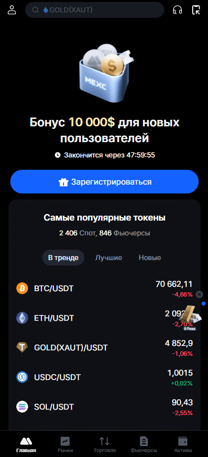 Это криптобиржа с низкими комиссиями: на споте для мейкера – 0%, для тейкера – 0,05%. Фьючерсы с плечом до 500x – вариант для тех, кто готов работать с повышенным риском.