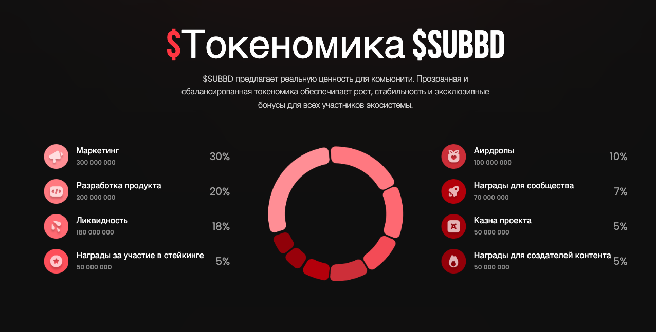Токен SUBBD – ключевой элемент этой экосистемы. Он используется для оплаты комиссий, доступа к ИИ-функциям, стейкинга с фиксированной ставкой в 20% и других возможностей. Актив сейчас проходит стадию пресейла.
