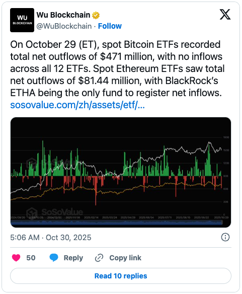 Ранее аналитики говорили Cointelegraph, что потоки в ETF связаны с ценой токена: рост в начале октября был вызван крупным притоком средств в эти инвестиционные инструменты.
