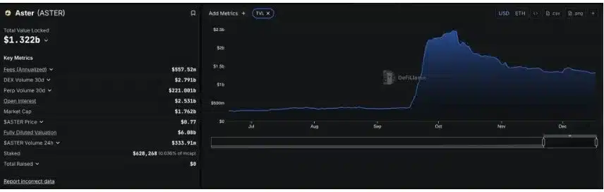 Son dönemlerde en iyi kripto para adaylarından biri olarak görülen Aster coin, 30 günde %42 eridi. DeFi Llama verileri de düşüşü doğruluyor.